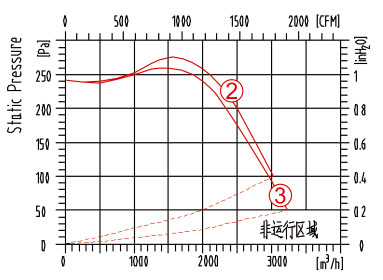 3. 風(fēng)量和靜壓曲線圖:
