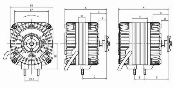 | 型號 | 額定電壓 | 頻率 | 輸入功率 | 輸出功率 | 額定電流 | 轉(zhuǎn)速 | A mm | B mm | C mm | D mm | E mm | H mm |